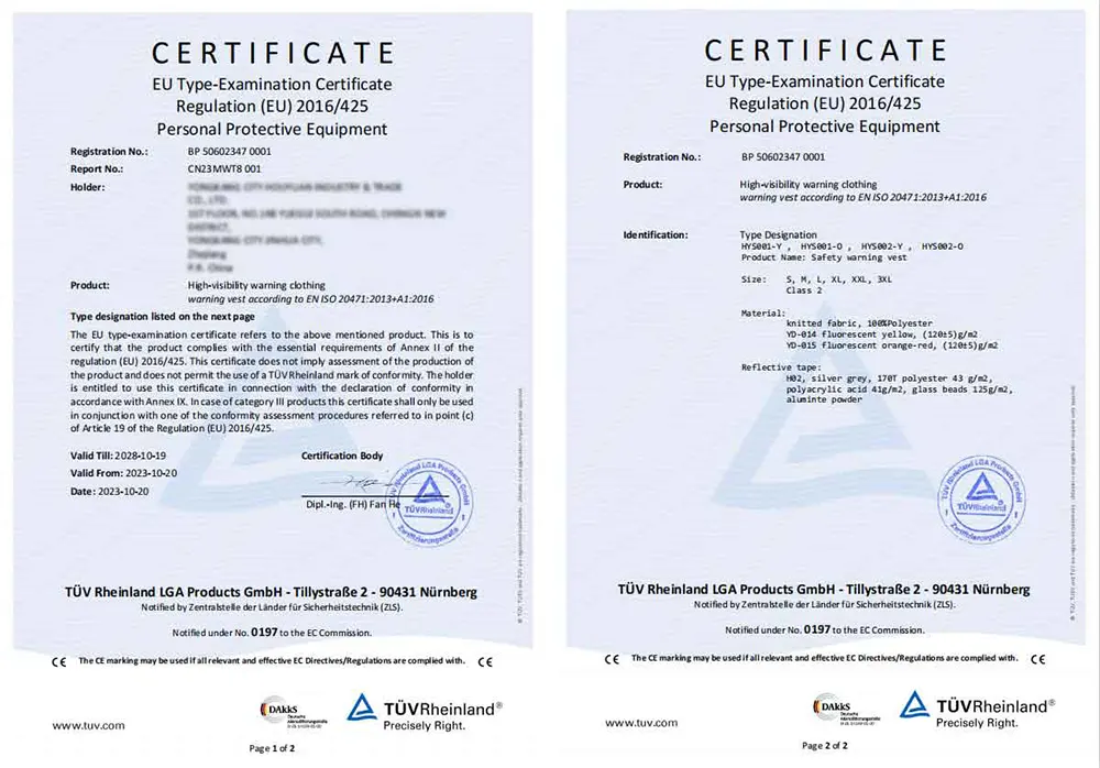 Ці матеріали розроблені таким чином, щоб бути водонепроникними, стійкими до розривів і здатними витримувати температурні коливання, звичайні для зберігання та використання автомобільних дорожніх жилетів.