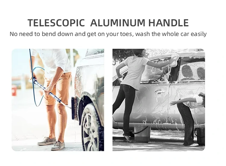 Наша телескопічна швабра для миття автомобіля призначена для ефективного повного прибирання автомобіля. Він усуває потребу у відрах завдяки головці, що обертається на 180°, висувній алюмінієвій ручці та функції потоку води через шлангове з’єднання. Як надійний виробник, ми пропонуємо довговічні, настроювані конструкції для оптових поставок.